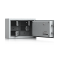 Design (inside): With inside bays (only size 0 key strip with 7 hooks possible); bay dimension: H = 70 mm, W = 160 mm, D = 95 mm; other bay dimensions available if requested; the built-in key bays have single-bit locks; each with 6 tumblers; locks are guaranteed to differ.